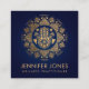 Elegantes Visitenkartendesign mit einer goldenen Hamsa Hand in einem Lotus mandala, erschaffen in aufwändiger Punktkunst auf tiefblauem Hintergrund. Die Hamsa ist ein mächtiges Symbol für Schutz, Segen und Intuition, während der Lotus für Reinheit und spirituelles Wachstum steht. Eine sinnvolle Wahl für Heiler, Energiearbeiter und ganzheitliche Praktiker. Vollständig anpassbar mit eigenem Namen, Titel und Details.