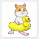 Hamster am Strand mit Duck als Swim-Ring Quadratischer Aufkleber
