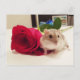 Ein Foto eines niedlichen Zwerghamsters neben einer rote Rose