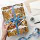Goldener Hamster snuggled oben in einer defekten Weihnachtsverzierung, die durch Goldgirlande umgeben wird, um das ganzes fieberhafte Feiertagsvorbereitungshamsterliebhaber Weihnachtsfeiertags-Packpapier zu vermeiden