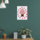 Dieses Poster zeigt ein grafisches Bild eines Kirschbaumes, der mit rosa Blüten bedeckt ist und von einem Kreis hübscher Kirschblütenblüten umgeben ist, die Sakura genannt werden. Dieses Design wurde geschaffen, um das japanische Hanami Festival zu feiern und enthält das Wort Hanami im Kirschbaum. Die Feier markiert den Frühling, während sich die Leute unter den blühenden Kirschbäumen treffen, um ein Picknick zu machen.