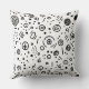 A whimsical black and white seamless pattern throw pillow filled with hand-drawn abstract doodles and playful marks. The design features concentric circles, spirals, dots, dashes, plus signs, and starbursts scattered across a white background. Its lively, modern aesthetic brings a fun and artistic touch to any space.