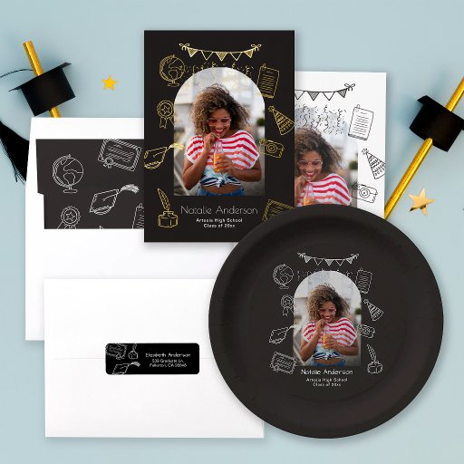 Hand Drawn Arch Photo Gold Graduate Announcement Folieneinladung