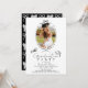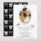 This coquette graduation party invitation features your photo surrounded by a hand-drawn black bow frame. The reverse side features a black background with a bow pattern. Personalize it for your needs. You can find matching products at my store.