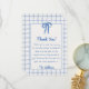 Hand Drawn Blue Bow Gingham Bow Baby Shower Dankeskarte