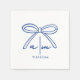 Personalisierte Hand gezeichnete Bow Whimsical Wedding Monogram Napkins. Diese personalisierten Hochzeitscocktail-Servietten zeichnen sich durch ein gepflegtes und elegantes Design in zeitlosem Blau und Weiß aus, das Ihren Festen eine subtile Touch an Eleganz verleiht. In der Mitte ist ein einfacher, handgezeichneter Bogen schön mit den Initialen der Braut und des Bräutigams und dem Hochzeitstag verbunden, was einen zeitlosen und schlichten Look mit europäischem, italienischem oder französischem Charme schafft. Dieser minimalistische Stil verwendet eine Mischung aus handgeschriebenem Skript und einfachem Schriftart, um das Design stilvoll und zugänglich behalten. Vollständig anpassbar, können Sie den Text und das Layout an Ihr Hochzeitstil anpassen. Diese Servietten eignen sich ideal für Hochzeitsfeiern und eignen sich auch hervorragend für ein Probe-Dinner oder ein Brautparty. Sie bieten eine vielseitige und raffinierte Ergänzung zu Ihren besonderen Veranstaltungen.