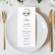 Present your courses with this botanical swan black and white menu, featuring a graceful hand-drawn swan illustration and delicate ink botanical florals. The minimalist layout and fine-art linework create a look that feels timeless, romantic, and editorial. Designed to complement elegant tablescapes, this menu pairs beautifully with classic, nature-inspired settings where understated detail and refined typography take center stage.