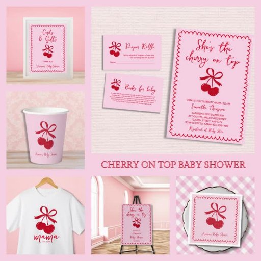 Cherry On Top Hand Drawn Bow Baby ShowerDesignt von Laura Herranen