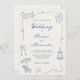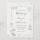 Hand Drawn Coastal Beach Dusty Blue Ivory Wedding Einladung