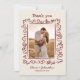 Celebrate your special day and express heartfelt gratitude with this wedding thank you card featuring a whimsical, hand-drawn scribble style frame and personalized photo of the happy couple. Perfect for couples who want to share a romantic moment from their big day while thanking guests for their presence, love, and generous gifts. The front design highlights your favorite wedding photo surrounded by playful red doodle-style flourishes and elegant handwritten typography, while the back continues the artistic theme with a fun sketch of a champagne tower and your personal message. The cream background and red ink create a timeless look with a modern twist, making this card suitable for rustic, boho, minimalist, or classic wedding themes. Ideal for couples who love personal, creative stationery with a dash of fun and flair. Professionally printed on quality cardstock, this card is a keepsake your guests will cherish. Custom names and dates add that perfect finishing touch to your post-wedding gratitude.
