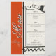 This sleek minimalist design is elegant and perfect! The clean lines make the day all about you while showcasing class and attention-to-detail. The front showcases script calligraphy text, apart from the word "menu" the text is fully customizable. Other tiny details apart from the light and dark color block style are the sweet little hand drawn details. The wine bottle, and bow on the front. If you want to change the word "Menu", reach out and let me know what you'd like. This design has space for all the basics, AND you have space to add more if you need it. The front is beautifully framed and the back has beautiful pin stripes and a tiny frame where you can add the initials of your couple, along with a sweet hand-drawn style strawberry.