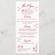 Hand Drawn French Red Whimsical Wedding Menükarte