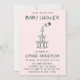 Add a fun and stylish touch to your celebration with this modern baby shower invitation featuring a playful champagne tower illustration topped with a baby bottle. The minimalist design and soft blush background create a trendy and elegant look while the quirky illustration adds a lighthearted vibe—perfect for celebrating the parents-to-be.