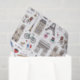 Handgezeichnete Muster zeigen Doodles aller Dinge in Paris, vom Eiffelturm und Arc de Triomphe bis hin zu Bistrostühlen und Makaronen.