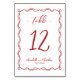 Niedliche handgezeichnete raue Whimsical Wedding Tischnummer. Diese Tischnummer-Karte zeichnet sich durch einen zauberhaften, handgezeichneten Schwirl- und Schleifenrand aus, der Ihrem Event eine spielerische und dennoch raffinierte Touch verleiht. Der skurrile Rahmen umgibt die Tischnummer sanft, indem ein Mix aus Drehbüchern und handgeschriebenen Schriftart verwendet wird, um ein stilvolles und persönliches Design zu schaffen, das von der italienischen Ästhetik inspiriert wird. Die Schriftart und Kunstwerke sind rot, mit einem schlichten, weißen Hintergrund gepaart und sorgen für ein gepflegtes und elegantes Ambiente. Dieses Design ist perfekt für Hochzeiten, Brautpartys, Tee-Party, Probe-Dinners und vieles mehr geeignet und bietet ein elegantes und dennoch unterhaltsames Ambiente. Vollständig anpassbar, ist es ein großartiger Weg, Ihre Feier mit einer einzigartigen und eleganten Touch zu versehen und gleichzeitig Dinge spielerisch und elegant behalten. Ideal für Paare, die ein trendiges und schlichtes Design gewollt haben, das ihren besonderen Tag ergänzt.