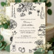 Whimsical charcoal black and cream wedding invitations with trendy hand-drawn doodles are a charming and creative way to invite guests to a celebration filled with love, laughter, and good food. Featuring charcoal black line art scribble style drawings on a soft cream background, this playful design includes doodles of floral arrangements, wedding rings, champagne bottles, wine glasses, cake, candles, and a dinner table—perfectly capturing the spirit of a reception-focused wedding. The casual handwritten fonts keep the layout stylish yet approachable, allowing all the key event details to stand out clearly. Ideal for couples planning a relaxed yet refined celebration with dinner and dancing, this invitation works beautifully for garden weddings, urban receptions, or restaurant-style events. The illustrated elements add a unique, storybook quality that makes your invite feel personal and fun while still maintaining a sense of elegance. This customizable design is perfect for those who want to set a warm, festive tone for their wedding day. Available as printed cards or instant digital download.
