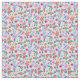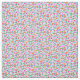 Fabric with a tiny pattern of hand drawn flowers and leaves. Pink and orange flowers, with stems and flowers in shades of green and blue cover fabric of your choice, in many sizes. All elements of this design were done by hand to create a seamless, repeating pattern. A pale pink background is shown, and is easy to change using the design tool. Perfect for decorating, or sewing, for a new baby girl.