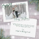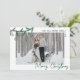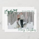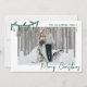 Schicken Sie mit dieser horizontalen, flachen Weihnachtskarte Ihren Feiertag. Die Vorderseite hebt ein großes Foto auf einem knusprigen, weißen Hintergrund hervor, mit einem grünen Doodle-Tuch aus Kieferngrün und hängenden Ornamenten in der oberen links Ecke, die das Bild leicht überlappen und ein lässig handgezeichnet Aussehen verleihen. Die obere Rechte hat Platz für Ihren Namen oder Familiennamen und das Jahr in einem handgeschriebenen, grünen Schriftart, während unten rechts "Frohe Weihnachten" im grünen Schriftzeichen-Stil steht. Auf der Rückseite gibt es Platz, um einen Urlaubstitel hinzuzufügen und von den Namen Ihrer Familie zu signieren, oder Sie können ihn leer verlassen, um eine persönliche Nachricht für eine herzlichere Touch zu handschreiben. Erhältlich als gedruckte Karte oder digitale Datei, sodass Sie einfach ausschicken, online freigeben oder lokal drucken können.