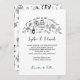 This elegant yet playful design showcases delicate black ink line illustrations — including cake, candles, wine, florals, and celebratory details — arranged in a soft, airy layout that feels personal, timeless, and joyful. Perfect for couples looking for a wedding invitation that is artistic, modern, and full of character without feeling overly formal.