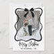 Send holiday cheer with this vertical Christmas card featuring a single centered photo framed by a simple swirling ribbon-style border. A hand-drawn coquette bow sits at the top, adding a sweet touch above the image. Below the framed photo, “Merry Christmas” appears in handwritten script, with space underneath to center your family name or individual names.