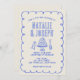 Diese Einladung ist perfekt für Ihre Hochzeit, wenn Sie eine elegante, einzigartige und leicht bearbeitbare QR Code Hochzeitseinladung suchen. Eine elegante, einfache minimalistisch weiße und blaue Hochzeitsvorlage. Das ist mit schlichtem cremefarbenem Hintergrund versehen. Und die Vornamen der blauen Hand von Braut und Bräutigam Mit handgezückten, illustrierten Champagnergläsern und einem Hochzeitskuchen und einer Champagnerflasche kackend. Erschwinglich und es ist auch digitale elektronische E-Einladung, wenn Sie gewollt, es per Text oder E-Mail zu senden. Alle Informationen können durch Anklicken des Buttons Personalisieren angepasst werden. So packen Sie es und machen Sie es zu Ihrem, sodass Sie verlobt und aufgeregt einladen .