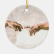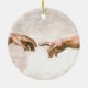 Hand des Gottes, der Adam (Detail) von Michelangelo berührt. Dies ist ein Detail des berühmten Gemäldes "Die Schöpfung von Adam" des italienischen Renaissancemeisters Michelangelo Buonarroti, das er 1510 an der Decke der Sixtinischen Kapelle in Rom, Italien, gemalt hat.