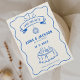 Hand Illustrierte Quirky Retro Zeichnend blaue Hoc Save The Date