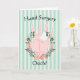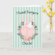 Holen Sie sich eine gute Karte für die handliche Operation, mit einer Abbildung einer Hand in der Mitte eines Blumenkranzes auf einem gestreiften Hintergrund. Dank Creative Fabrica und Pixabay für einige der Elemente im Design verwendet. Die Wörter können sowohl auf der Vorderseite als auch auf der Innenseite der Karte geändert werden.