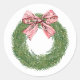 Hand Painted Winter Pine Wreath Striped Red Bow Runder Aufkleber