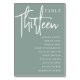 Einfache und schicke Tischnummer-Karten in Eukalyptus Grün und Weiß geben bei Ihrer Hochzeit oder Veranstaltung eine elegante Note. Das Design enthält "Table [number]" in einem spannenden Mix aus klassischer Serif und handgeschriebenem Skriptsatz, darunter einzelne Gastnamen. Design wiederholt sich auf beiden Seiten. Einzelne nummerierte Karten werden separat verkauft; bestellen Sie jede Tischnummer einzeln aus unserer Sammlung.