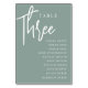 Einfache und schicke Tischnummer-Karten in Eukalyptus Grün und Weiß geben bei Ihrer Hochzeit oder Veranstaltung eine elegante Note. Das Design enthält "Table [number]" in einem spannenden Mix aus klassischer Serif und handgeschriebenem Skriptsatz, darunter einzelne Gastnamen. Design wiederholt sich auf beiden Seiten. Einzelne nummerierte Karten werden separat verkauft; bestellen Sie jede Tischnummer einzeln aus unserer Sammlung.