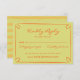 Eine einfache und elegante Kalligraphie farbenfrohe Retro-Hochzeitskarte rsvp. Wie Sie sehen, hat es einen Vintagen, modernen grünen Hintergrund mit orangefarbenem, handgeschriebenem Skript in einem handgezeichneten Rahmen. Und die rosa und orangefarbenen Pinstreifen auf der Rückseite. Sie können es bearbeiten, indem Sie auf den Personalisieren-Button klicken.