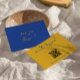 A simple and elegant calligraphy colorful retro Italian wedding scannable QR Code rsvp card. As you see it has a vintage modern yellow background with blue hand written script. And blue background on the back. You can edit it by clicking on the personalize button.
