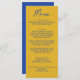 A colorful retro funky modern blue and yellow written menu . And hand drawn yellow and blue. Perfect and matching with the whole suite. wedding dinner menu. Which features chic template design of boho vintage yellow background and blue typography.