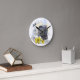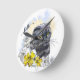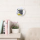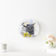 Hand zeichne lustige Schwarzbrikkatze mit Blume Runde Wanduhr