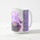 Handbemalte lila Schwertlilie - Iris - Blumen-Latte-Mug. Ein prächtiges Aquarell-Blumendesign. Entworfen nach meinen originalen Aquarell-Gemälden, die ich in meinem eigenen Blumengarten gemalt habe.