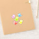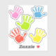 Handdrucke in Rosa, Blau, Grün, Rot und Gelb.