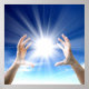 Hände auf blauem Hintergrund, Reiki, Chakra Poster