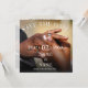 Hände eines farbigen Hochzeitspaares auf Ring.Die Namen, der Text, die Bilder, der Ort und das Datum können in der Vorlage angepasst werden.Foto durch Alekon-Bilder auf Unsplash.com