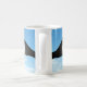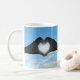 Hände in der Herz-Form-Silhouette auf blauem Kaffeetasse