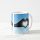 Hübsches Symbol der Liebe die Hände zeigend, welche die Form eines Herzens als Silhouette gegen einen blauen Himmel mit geschwollenen weißen Wolken bilden. Fertigen Sie ihn mit Ihrem personalisierten Text besonders an. Ein sehr nettes mit einer Freundin oder einer Ehefrau zu teilen Hochzeit Andenken- oder Valentinestageseinzelteil. Alles entwirft Copyright © CuteComfy.