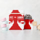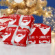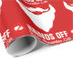 Weihnachtsgeschenkpapier in warmen Rot und Weiß. LEST HÄNDS OFF bis zum 25. Dezember, lustiger, kühn Weihnachtsbart und ein unberührter handsignierter gemusterter Weihnachtsdruck. Grafik und Design von Sarah Trett.