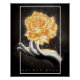Eine Hand hält eine goldene Rose mit schwarzsternem Hintergrund