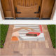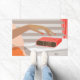 Händeschalten der Frauen auf den Knopf für den Wec Fußmatte