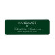 Ein Label für Ihre handgefertigten Produkte oder Kunstwerke, das Ihren Namen und Ihre Website-Adresse personalisieren und hinzufügen kann. Grüner Hintergrund, weißer Text. Sie können die Hintergrundfarbe und die Textfarbe so ändern, dass sie mit Ihrer Marke übereinstimmen.
