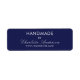 Ein Label für Ihre handgefertigten Produkte oder Kunstwerke, das Ihren Namen und Ihre Website-Adresse personalisieren und hinzufügen kann. Navy blauer Hintergrund, weißer Text. Sie können die Hintergrundfarbe und die Textfarbe so ändern, dass sie mit Ihrer Marke übereinstimmen.