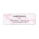 Ein Label für Ihre handgefertigten Produkte oder Kunstwerke, das Ihren Namen und Ihre Website-Adresse personalisieren und hinzufügen kann. Rosa rosa Marmorsteinfarben als Hintergrund, schwarzer Text.