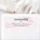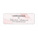Ein Label für Ihre handgefertigten Produkte oder Kunstwerke, das Ihren Namen und Ihre Website-Adresse personalisieren und hinzufügen kann. Rosa rosa Marmorsteinfarben als Hintergrund, schwarzer Text.