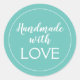 Handgefertigt mit Liebe Aquamarin und weiß Runder Aufkleber