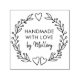 Handmade with Liebe ... personalisierte Briefmarke für Ihre persönlichen Geschenke oder kleine Unternehmen. Dieses niedliche Design hat einen Doodle gezeichnet botanischen Kranz mit Herz und Blattwerk. Sie ist mit moderner Typografie und lässiger handgeschriebener Schrift versehen. Ein rustikales Design im Landhausstil für Handwerker und Einzelhändler.